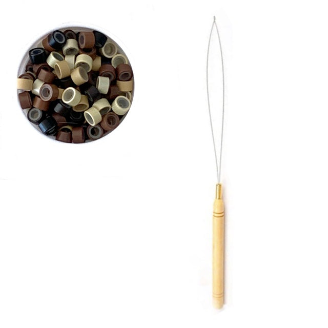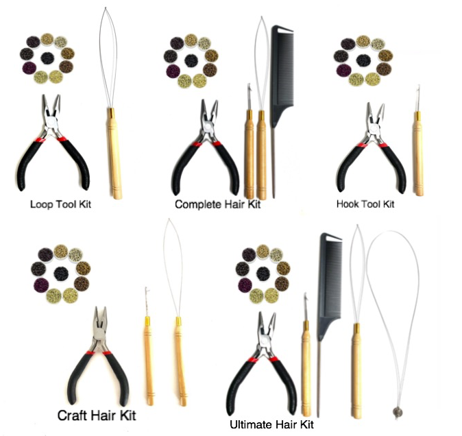 Complete Kit Includes: 1 x Hair Plier +2 x Hair Tools (1 x Hook Tool + 1 x Loop Threader)+ 1 x Black Comb with Rat-Tail with choice of beads/no beads.