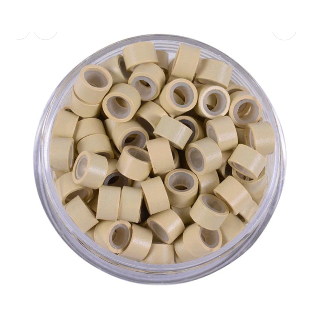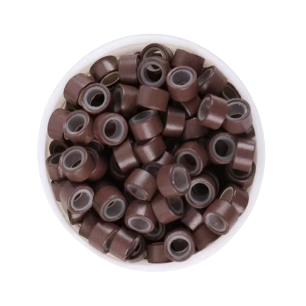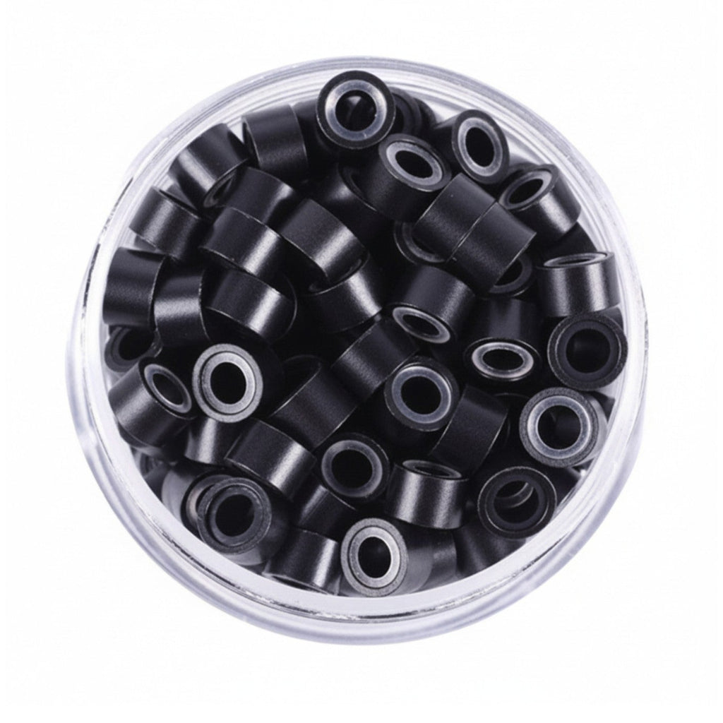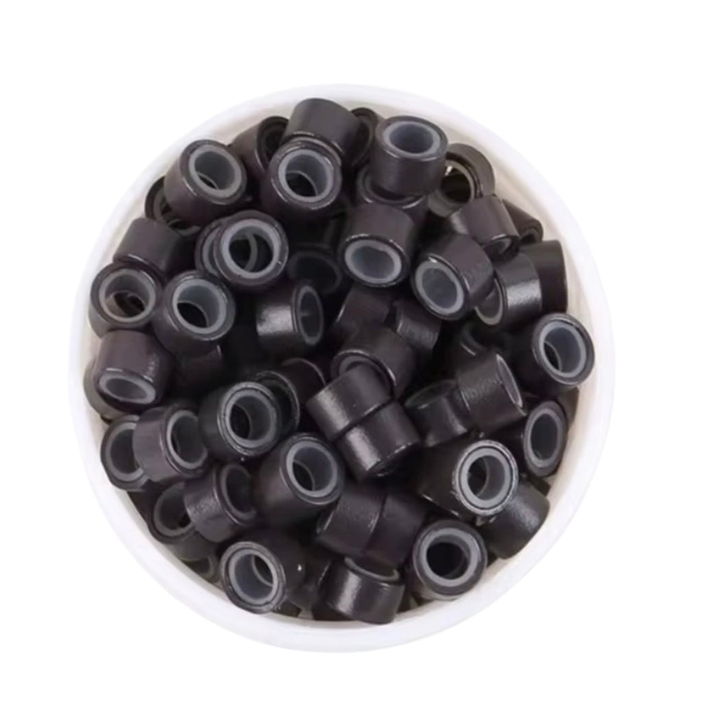 5mm silicone-lined micro rings (100pc) with a soft grip lining for secure, long-lasting installs. Ideal for i-tip and micro-link methods, plus feather installs—lightweight, comfortable, and salon approved.