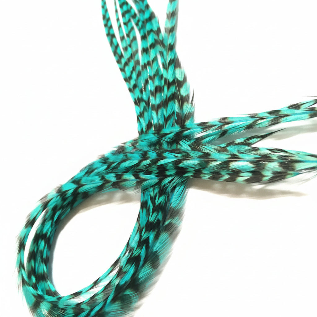 Add instant Aqua colour, texture and playful personality to any hairstyle with our premium Aqua Blue Feather Extensions. Perfect for everyday wear, festivals, kids, teens, stylists and anyone wanting a pop of gorgeous popular aqua without damage or commitment.