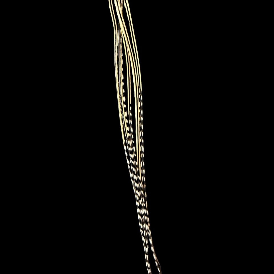 Blonde Grizzly Natural Hair Feather Extensions in 3 lengths for soft, boho-inspired styling. High-quality, easy to apply, and exclusive to Wild4Feathers. Enjoy Free Express Shipping on orders $100+