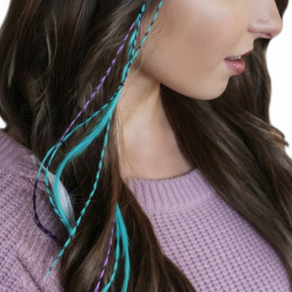Add instant bright ocean colours with our best-selling mermaid long earthy naturals, and textures for mermaid length hairstyles with our premium 16-piece XXL Blue & Naturals Feather Pack. Real, reusable and heat-friendly feathers for bold, damage-free colour.