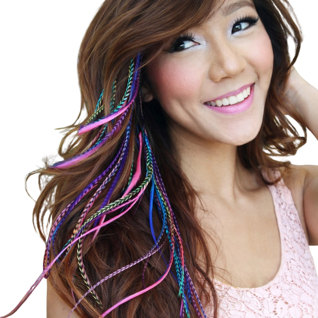 20 XXL Multi Colour Feather Extensions Mix