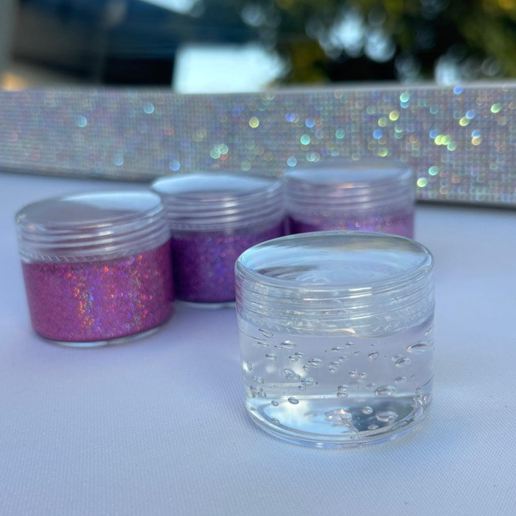 Clear Gel deal for : adding to any loose glitter powers, mixing custom shades, refresh glitter pods if begins to dry (eg. leaving lids off in sun for hours) , layering and sealing for greater longer wear, diluting glitter ratio using more gel and less glitter for a subtler glitter look, to economise glitter-pods if using on small young children, having extra gel on hand- never run out mid-event!