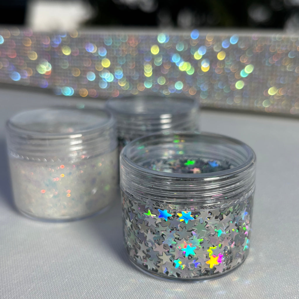 Glitter Mix Series - Glamorous High Sparkle, holographic wet glitters with high pigmentation - Combining Soft Series and Chunky Glitter Series together - creating our own shimmer mixes. Extremely popular with kids and teens.
