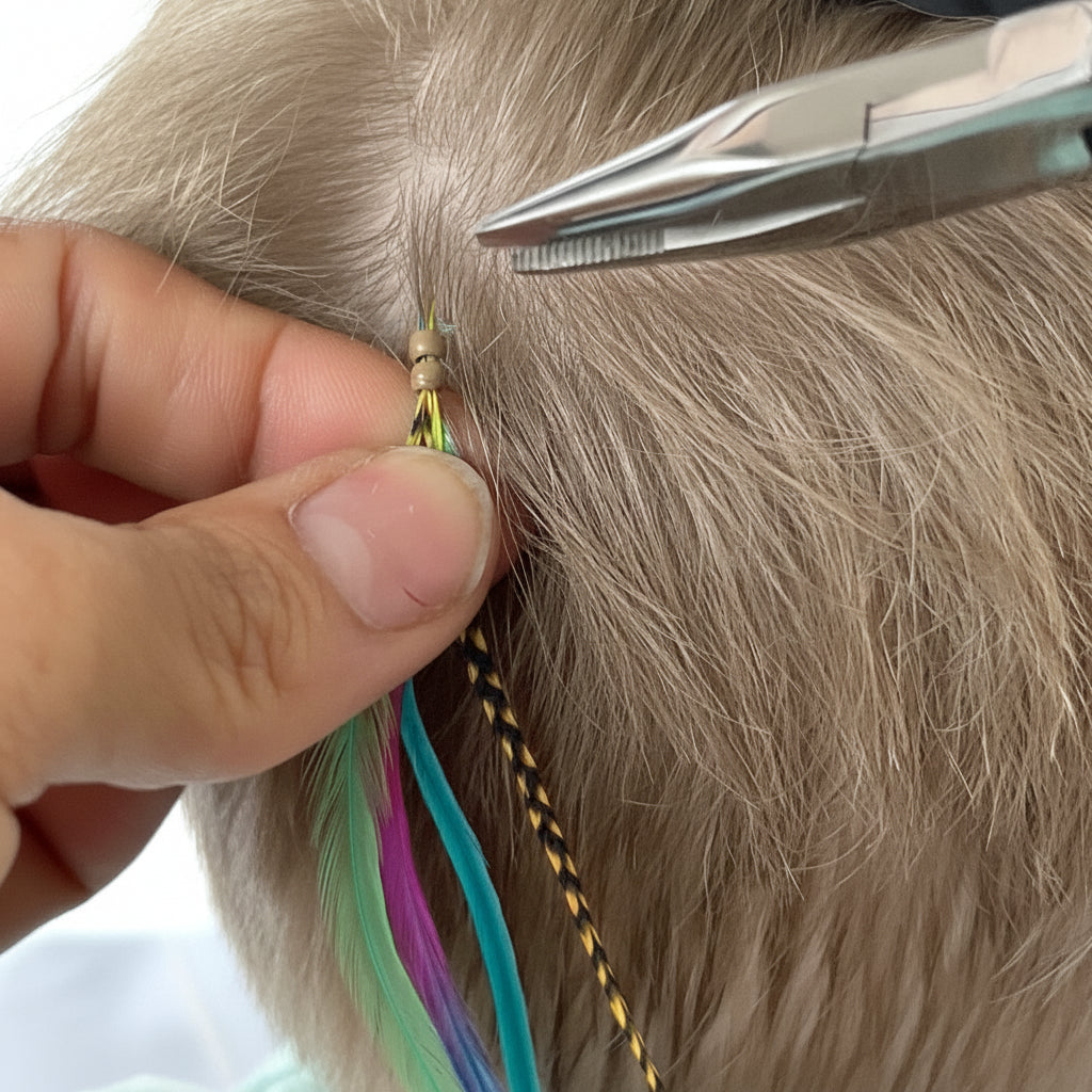 Fast, simple and professional instructions for applying feather hair extensions. Ideal for beginners, salons, festival pop-ups and home use. Includes tools required, step-by-step guides, pro tips and video tutorials for the best results.
