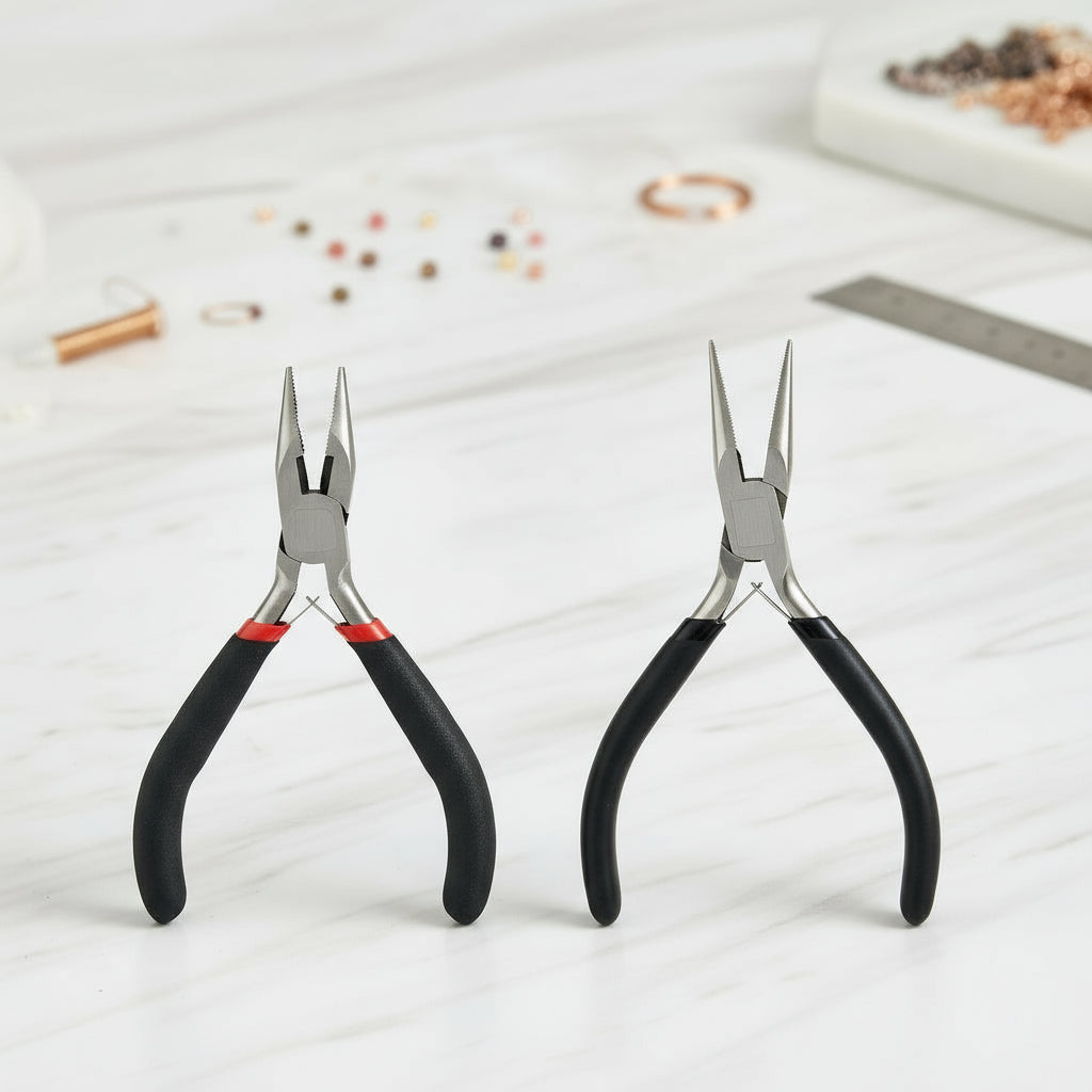 - Get pliers, and Clamp ring beads tightly with pliers, one bead at a time, close together for neatness.