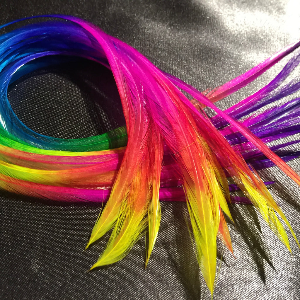 • 4-piece, extra long (XL) Rainbow Solid feathers– for longer front hairstyles
