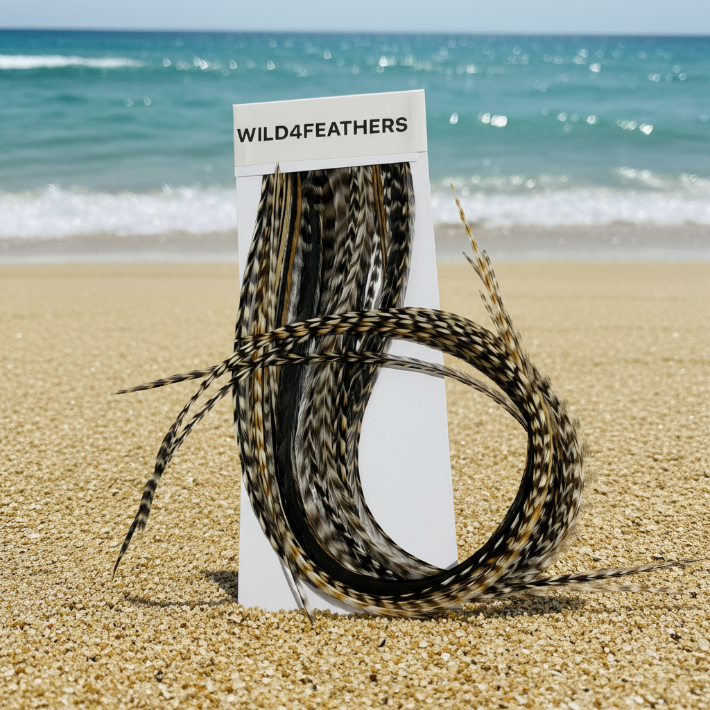 Introducing exceptional quality 20-piece XXL (Super Long) WIDE n’ SKINNY Naturals Mix feather extensions in beautiful natural grizzly tones. Super Long, natural grizzly feathers in wide, semi-wide and skinny styles. 20 Consistent long lengths, reusable, heat-friendly, and perfect for boho, festival, and everyday styles-wash, curl, straighten and blow-dry just like your hair. Easy to apply with rings and hair tools. Pack $140.90 (Value $360, XXL Feathers retail $18ea)